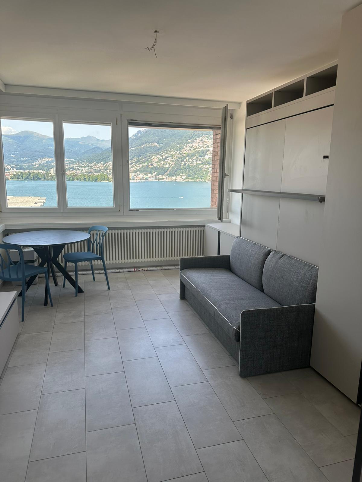 Nella località di Paradiso in una zona estremamente soleggiata, vicino a tutte le infrastrutture, al sesto ed ultimo piano di una palazzina, affittiamo un monolocale con imperdibile vista lago completamente ristrutturato e corredato (pentole, bicchieri, piatti, tavolo con sedie, divano, ecc..), l’appartamento è costituito da ingresso, cucina, zona giorno/notte dalla quale si può ammirare il golfo di Lugano servito da un bagno con doccia.